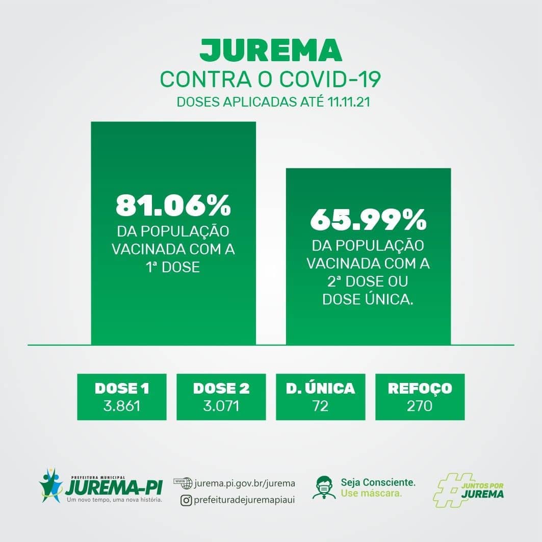 Nossos números atualizados da Campanha de Vacinação contra a COVID 19 no município de Jurema PI. 💉💉💉