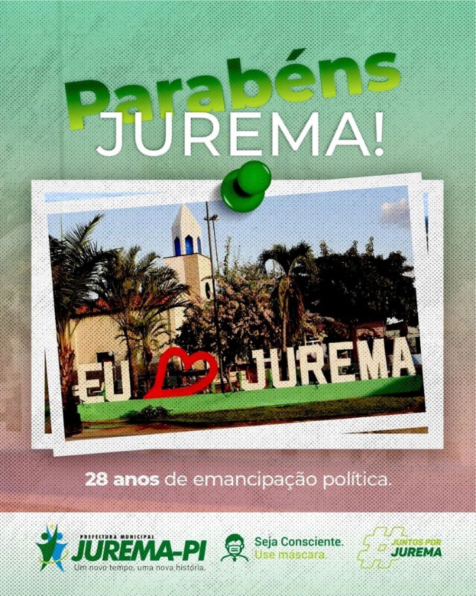 A Prefeita Municipal de Jurema, Kaylanne Oliveira e sua Equipe de gestão, desejam um Feliz Aniversário para Jurema, pelos 28 anos de conquistas e progresso.